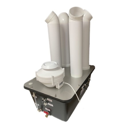 Natężenie emisji mgły 300 m3/h (wentylator kanałowy 150mm WKA-150) - regulowane anemostatem. Max wydajność dla wersji z wentylatorem promieniowym WP-100 (do 400m3/h - patrz konfigurator poniżej)